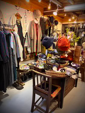 カジュアルなスタイルのお洋服も岡山のデニム、泉州の織物といった少し趣のあるものから何気なくお出かけに使えて少し気の利くデザインといったもの もご用意しております。